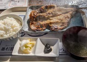 さばみりんは、食べ慣れてるスーパーのより甘さ控えめ。個人的にはもう少し甘いのが好み。あおさの味噌汁もうまい。干物を2種類注文したので、並のごはんは足りなかった。海苔の佃煮、テーブルには2種類のふりかけもあるから、安心してご飯大盛りが正解と後悔。