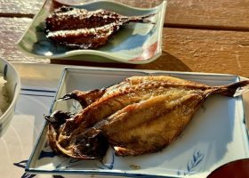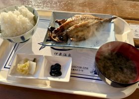 海なし県の埼玉に住んでいますが年に数回、伊東に来るようになって8年目。朝は決まって定宿近くの杉国商店さんで「あじの開き大とごはんセット大」を外(テラス席)でいただきます、夏も冬も。